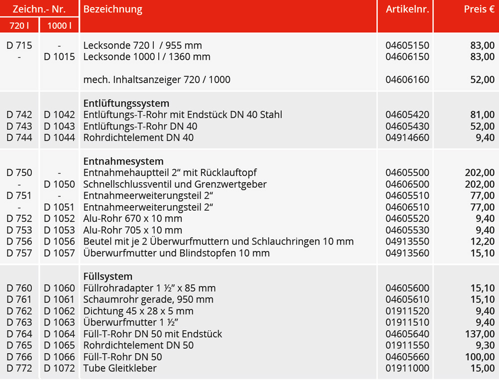 Zubehör rund um Ihre NAU TS Heizöl Erd- und Batterietanks